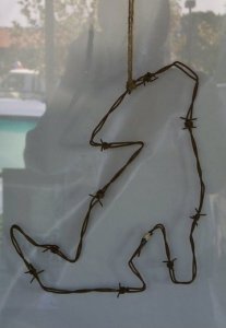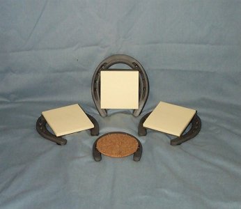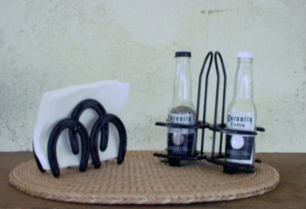 Click Pictures for larger Picture. Horseshoe Art, Branding Irons, Hummingbird feeder, KoKopelli Plant Hanger, Wine Rack.
